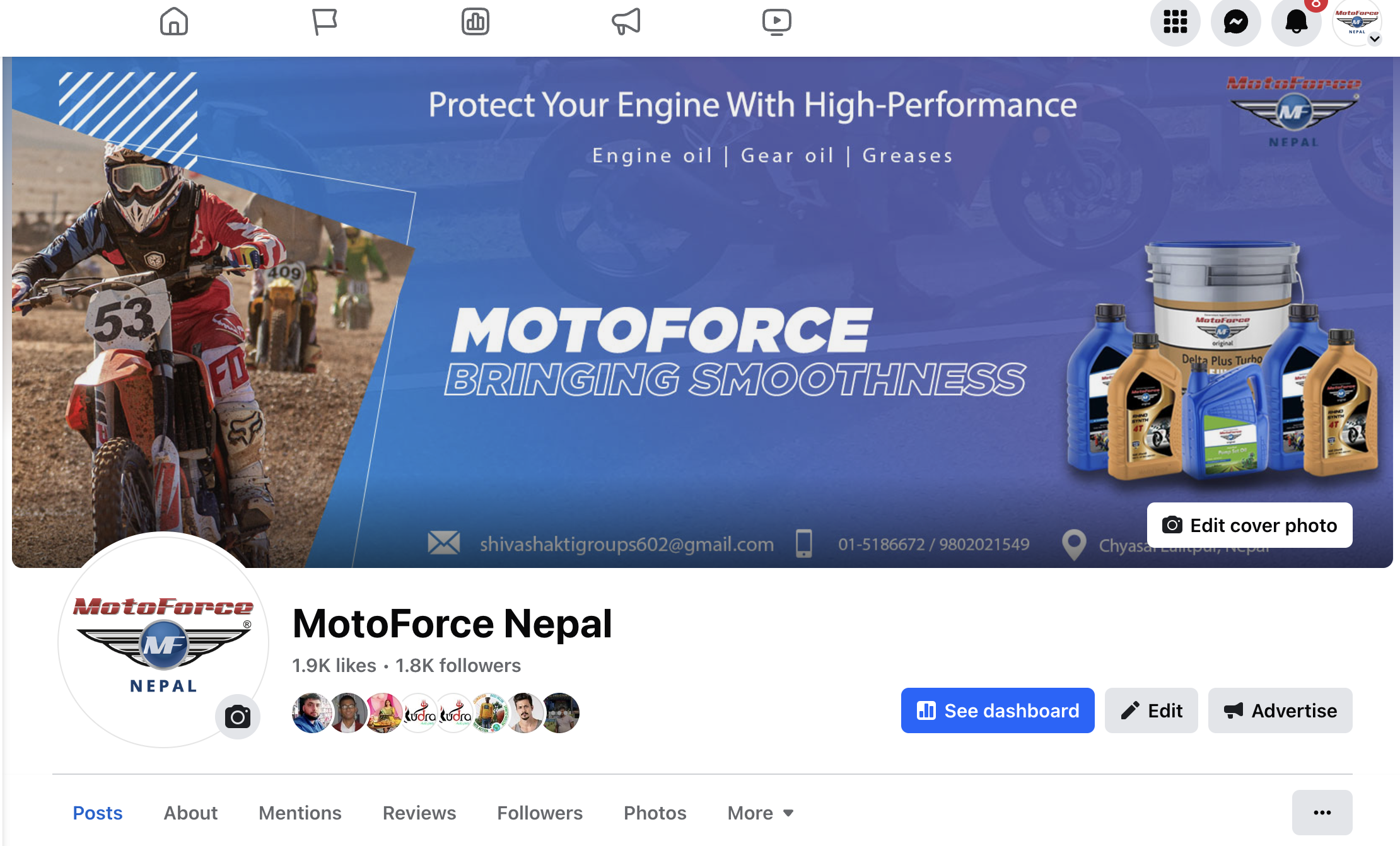 We offer Social Media Management, Graphic Design, Facebook Meta, and Local SEO services for Motoforce Nepal, an Oil Lube & Filter Service company located in Kathmandu, Chyasal. Our services aim to enhance their online visibility, engage local customers, and promote their quality services effectively.